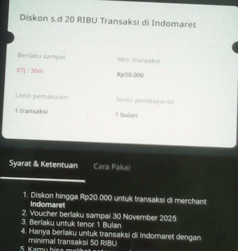 Namun, ngomong ngomong soal promo ini. Terkadang kredivo tidak memberikan informasi promo yang jelas. Salah satunya adalah terkait dengan sebuah diskon seperti pada gambar dibawah ini. Informasi ini sangat tidak jelas, berapa presentase yang didapat dari diskon ini. apakah 50% 30% dari pembelian. Hanya sebatas dapatkan S/D 20.000 dengan minimal 50 ribu pembelian. Ini itu seperti apa berapa presentase yang didapat ? bagaimana kalo tidak ada kejelasan, tiba tiba presentasenya ini adalah 1%5% dari pembelian. hal ini sangatlah merugikan. Diskon sekecil ini ngapain harus diambil.
